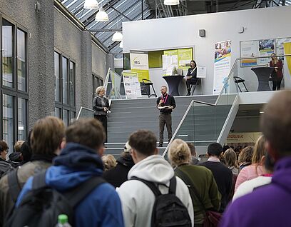 Als offene und vernetzte Hochschule für Angewandte Wissenschaften verstehen wir uns als Spielraum für Innovation. Hier arbeiten Studierende, Lehrende, Beschäftigte, Forschende, Unternehmen sowie Partner*innen gemeinsam und auf Augenhöhe praxisnah und werteorientiert an Lösungen für eine nachhaltige und damit lebenswerte Zukunft.