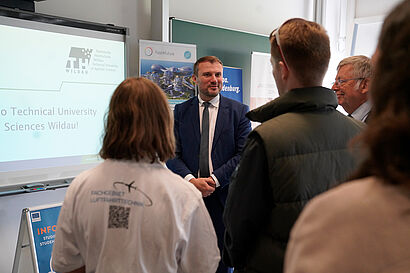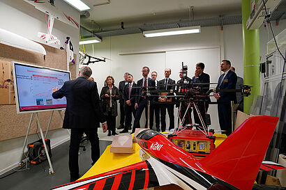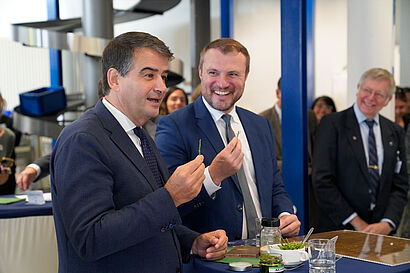 Angewandte Forschung im Blick: Exekutiv-Vizepräsident der Europäischen Kommission Raffaele Fitto und Landeswirtschaftsminister Keller zu Besuch an der TH Wildau