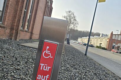 Neue Schilder, mehr Teilhabe: Auf dem Campus der Technischen Hochschule Wildau gibt es seit Kurzem eine einheitliche und gut erkennbare Beschilderung der barrierefreien Eingänge, der Taster für Automatiktüren sowie der barrierefreien WCs. Mit diesem Projekt, das vom Karrierezentrum für professorale Entwicklung, dem Sachgebiet Bauangelegenheiten und Technischer Dienst sowie dem Diversitätsmanager umgesetzt wurde, möchte die Hochschule einen nachhaltigen Beitrag zu Partizipation und einem lebenswerten, zugänglichen Campus leisten.
