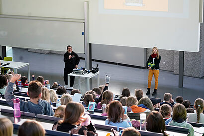 Rund 1.000 Kinder im Alter von 7 bis 12 Jahren begeisterte das Team der Kinderuniversität an der TH Wildau 2025 mit unterschiedlichen Formaten. Forschung und Wissenschaft kindgerecht erklären – so lautet das Ziel der beliebten Reihe, die es bereits seit mehr als 20 Jahren an der Wildauer Hochschule gibt. Am 6. Dezember beendete eine Nikolaus-Science-Show mit heißem Schnee, leuchtenden Flüssigkeiten und vergoldeter Schokolade das Kinderuni-Jahr.