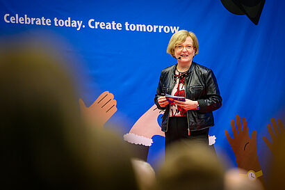 Zur Eröffnung der Veranstaltung stimmten Jule und Anton Schwarzbach von der Musikschule Erkner „Ein Kompliment“ der Musikband Sportfreunde Stiller an. Angelehnt an die bekannten Zeilen des Musikstücks begrüßte TH-Wildau-Präsidentin Prof. Ulrike Tippe die Absolvent*innen mit den Worten „Und ihr alle seid das Größte für uns!“ und war sichtlich stolz auf die Leistungen der Studierenden. Die anschließenden Festreden hielten für den Fachbereich WIR Nicole Korset-Ristic, Vorständin der BIO COMPANY SE, Vizepräsidentin der IHK Berlin und Alumna der TH Wildau, sowie Prof. Robert Luckner von der Technischen Universität Berlin.