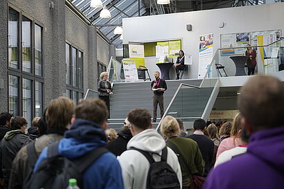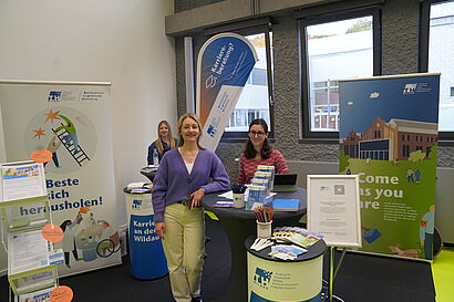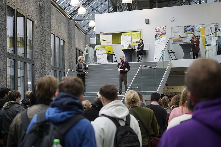 „Herzlich willkommen an der Technischen Hochschule Wildau zur diesjährigen THCONNECT“, so lauteten die einleitenden Worte von Prof. Ulrike Tippe am 14. Oktober 2025. Um 11 Uhr eröffnete die Präsidentin der TH Wildau gemeinsam mit Ray Trautwein, Leiter des Career Service und Diversitätsmanager der TH Wildau, die Karrieremesse auf dem Campus. Insgesamt 38 Austeller*innen verwandelten das Foyer sowie die Gänge, das Audimax und die Seminarräume von Halle 17 in eine vielfältige Messelandschaft.