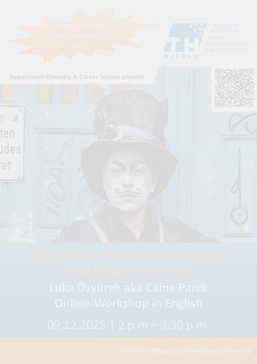 In diesem Workshop teilt Luka Özyürek (aka Caine Panik) seine eigene Reise vom introvertierten Studierenden mit Sozialängsten hin zu einem Drag King, der auf der Bühne in seinem Element ist; nicht trotz, sondern mit psychischen Herausforderungen. Teilnehmende lernen in Theorie und Praxis, wie sie Techniken aus Drag und Performance auch in Studium und Arbeit bewusst einsetzen können, um Angst und Stress abzubauen, Hemmungen zu überwinden, sich selbstbewusst zu präsentieren und dabei auch noch Spaß zu haben.